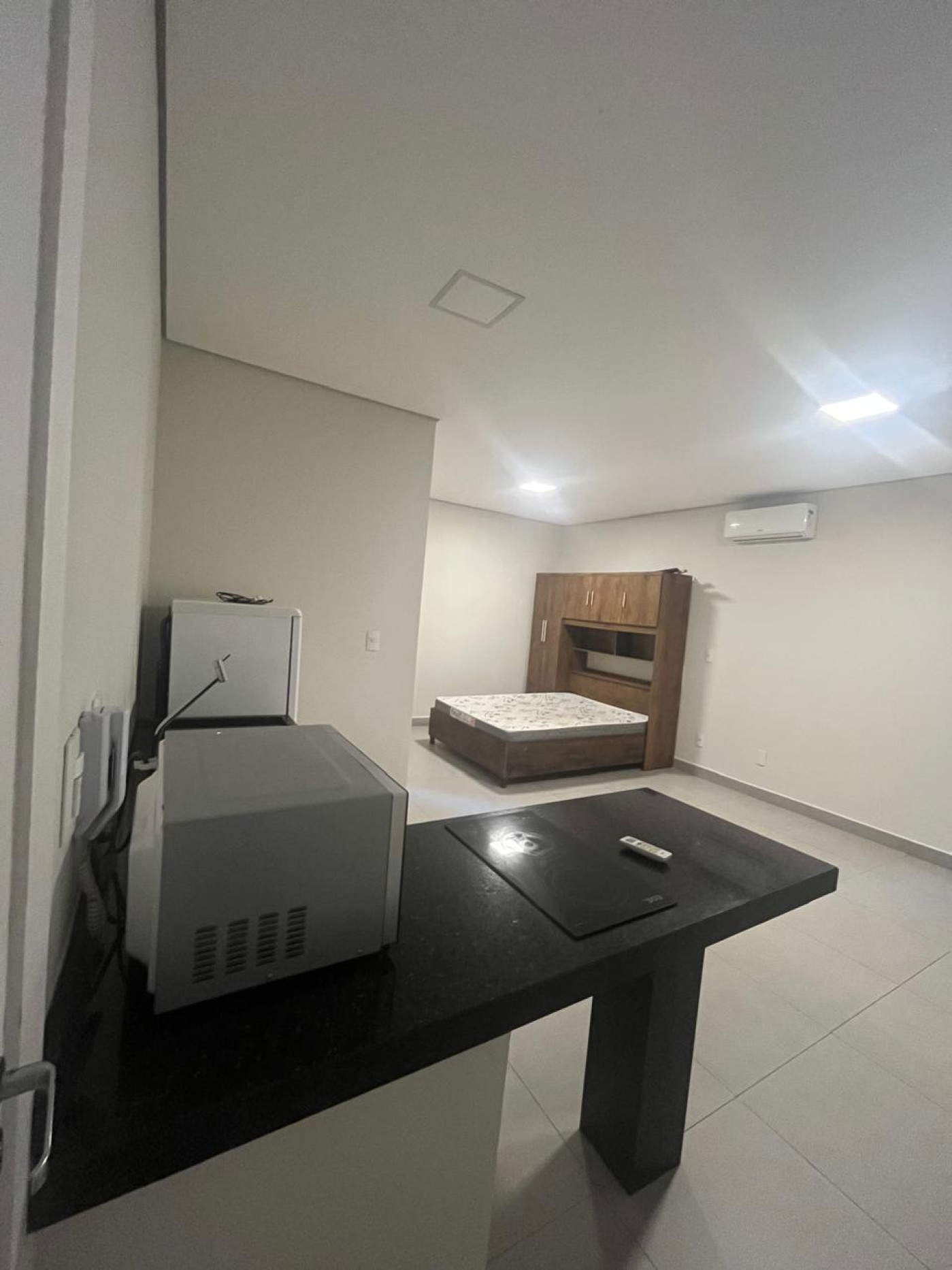 * COZINHA COM GABINETE PLANEJADO, FOGÃO DE INDUÇÃO, MICROONDAS, WC, DORMITÓRIO COM CAMA, AR-CONDICIONADO, 01 VAGA DE GARAGEM COBERTA E LAVANDERIA.