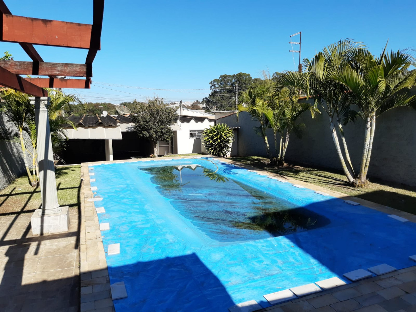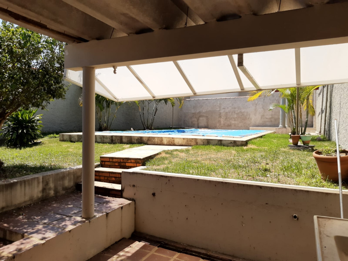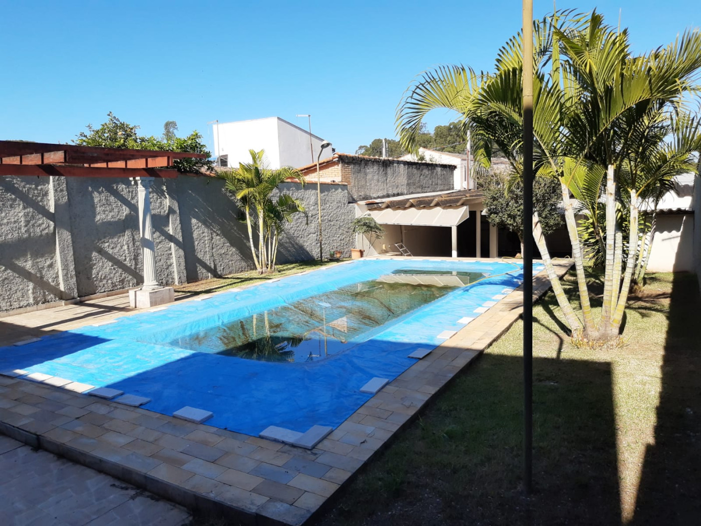 * BENFEITORIAS: 02 CÔMODOS COM, WC, GARAGEM PARA 04 CARROS E PISCINA.