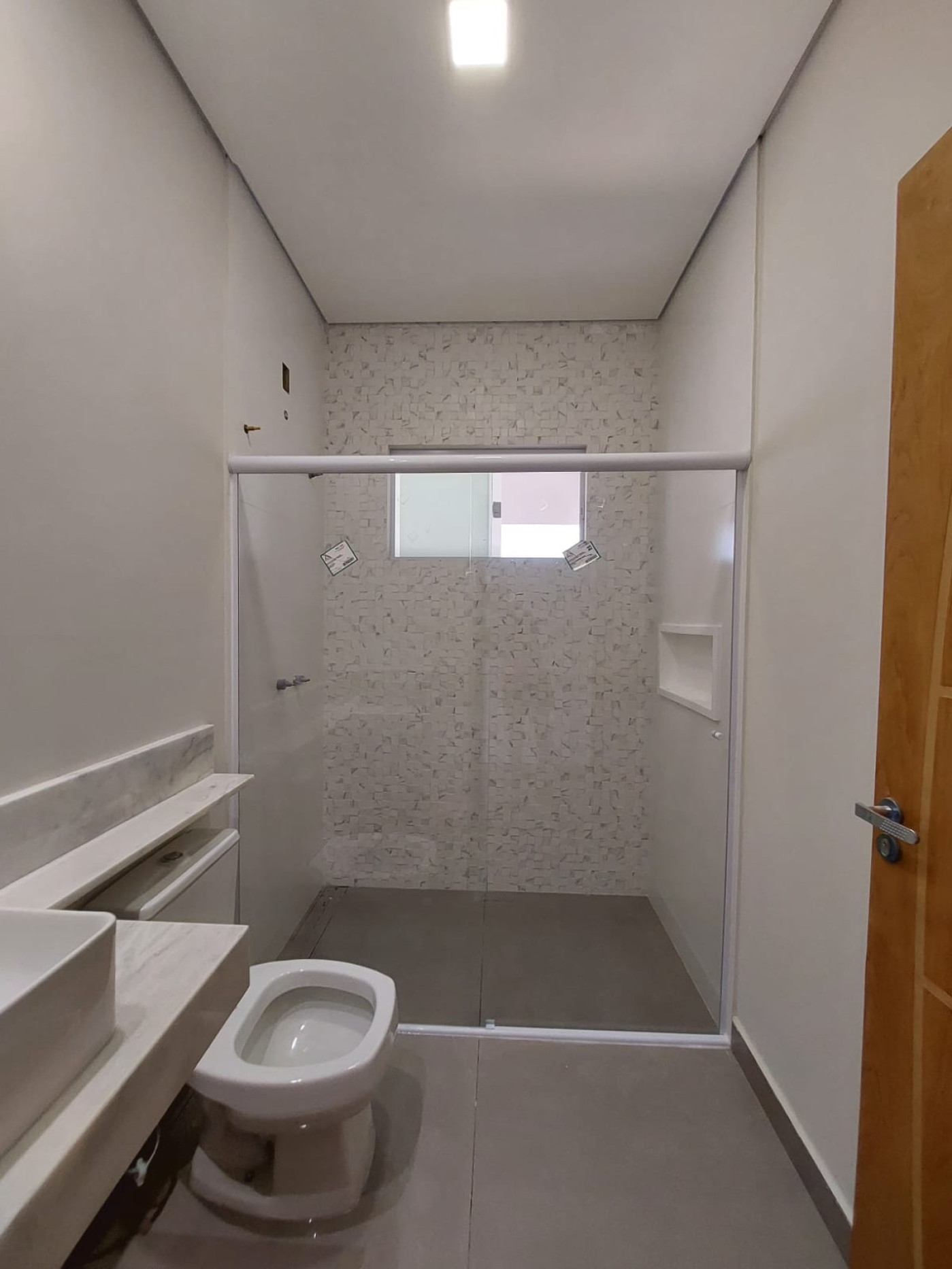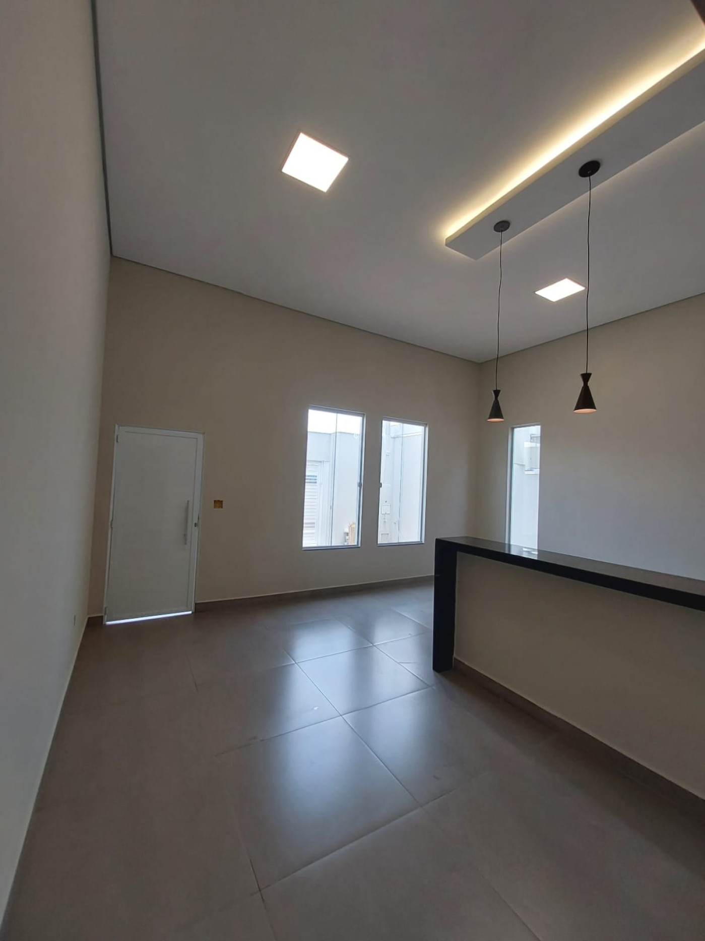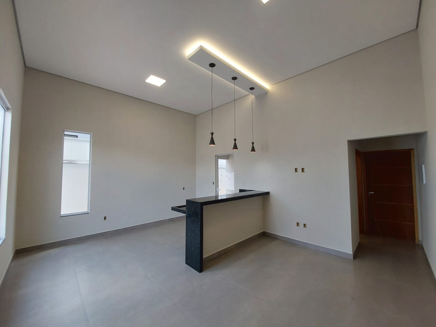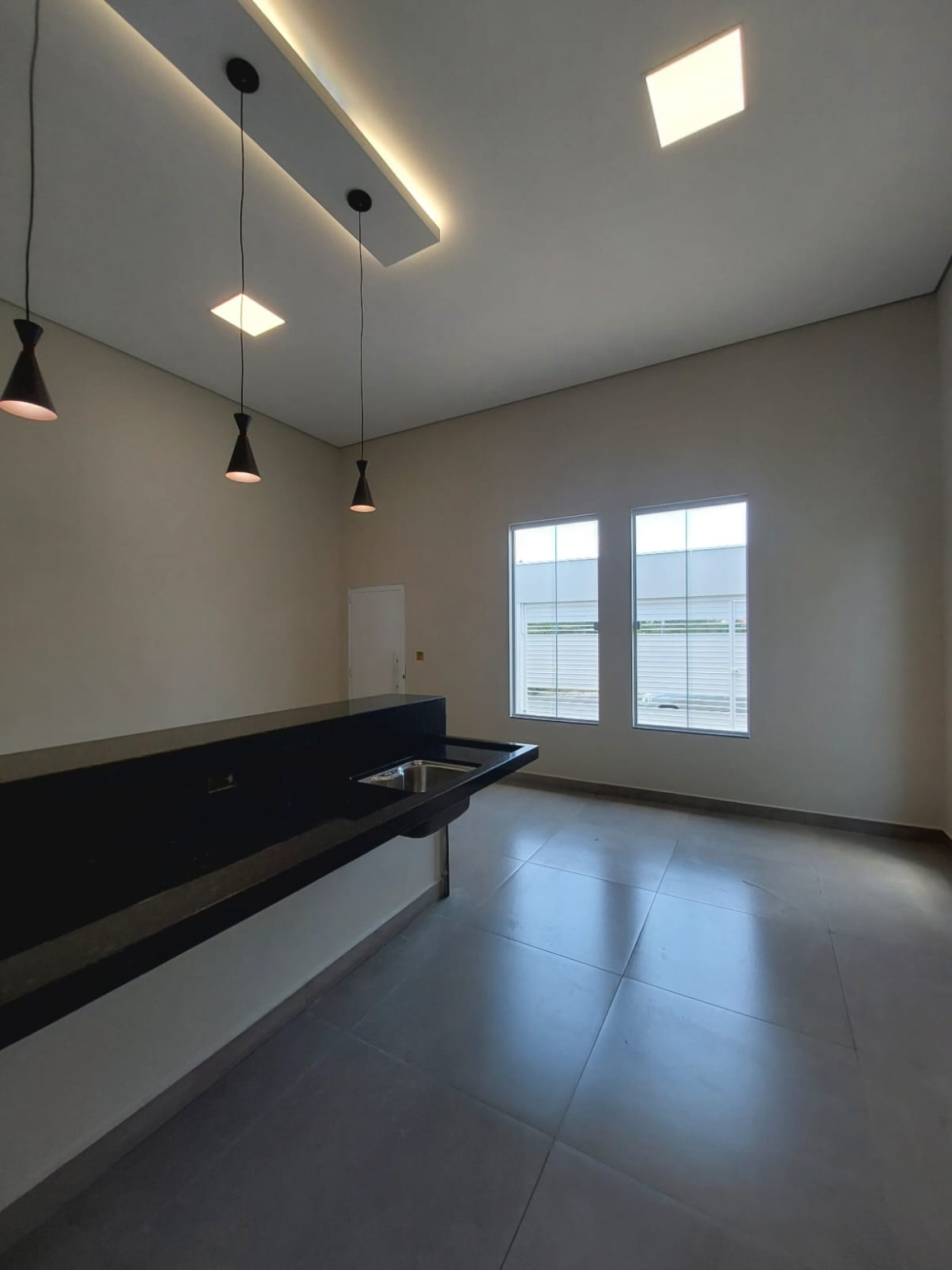 * SALA E COZINHA CONJUGADAS COM PÉ DIREITO DUPLO, WC SOCIAL AMPLO E MODERNO, COM BOX JÁ INSTALADO, LAVANDERIA COBERTA, 03 DORMITÓRIOS SENDO 01 SUITE (COM BOX, INFRAESTRUTURA PARA TV E AR CONDICIONADO), QUINTAL, VAGA DE GARAGEM PARA 02 CARROS