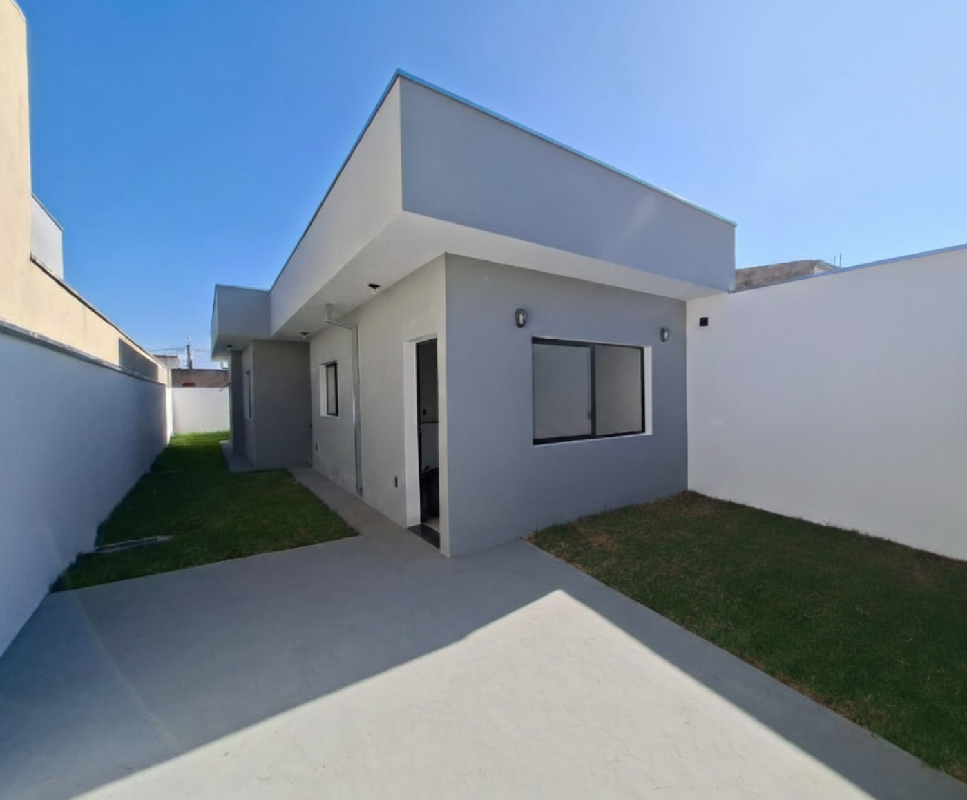 CASA TÉRREA COM 2 DORMITÓRIOS SENDO 01 SUÍTE, SALA, COZINHA COM COOKTOP, ÁREA DE SERVIÇOS - QUINTAL GRAMADO E 2 VAGAS DE GARAGEM