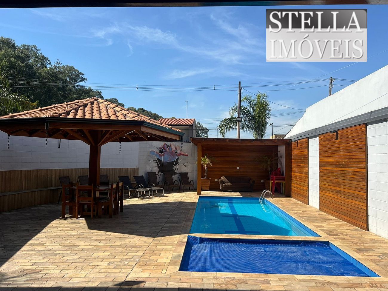 * EDICULA DE ESQUINA COM PISCINA ADULTO E INFANTIL, QUIOSQUE, ESPAÇO GOURMET COM CHURRASQUEIRA, 2 BANHEIROS E 1 DORMITORIO COM AR CONDICIONADO.